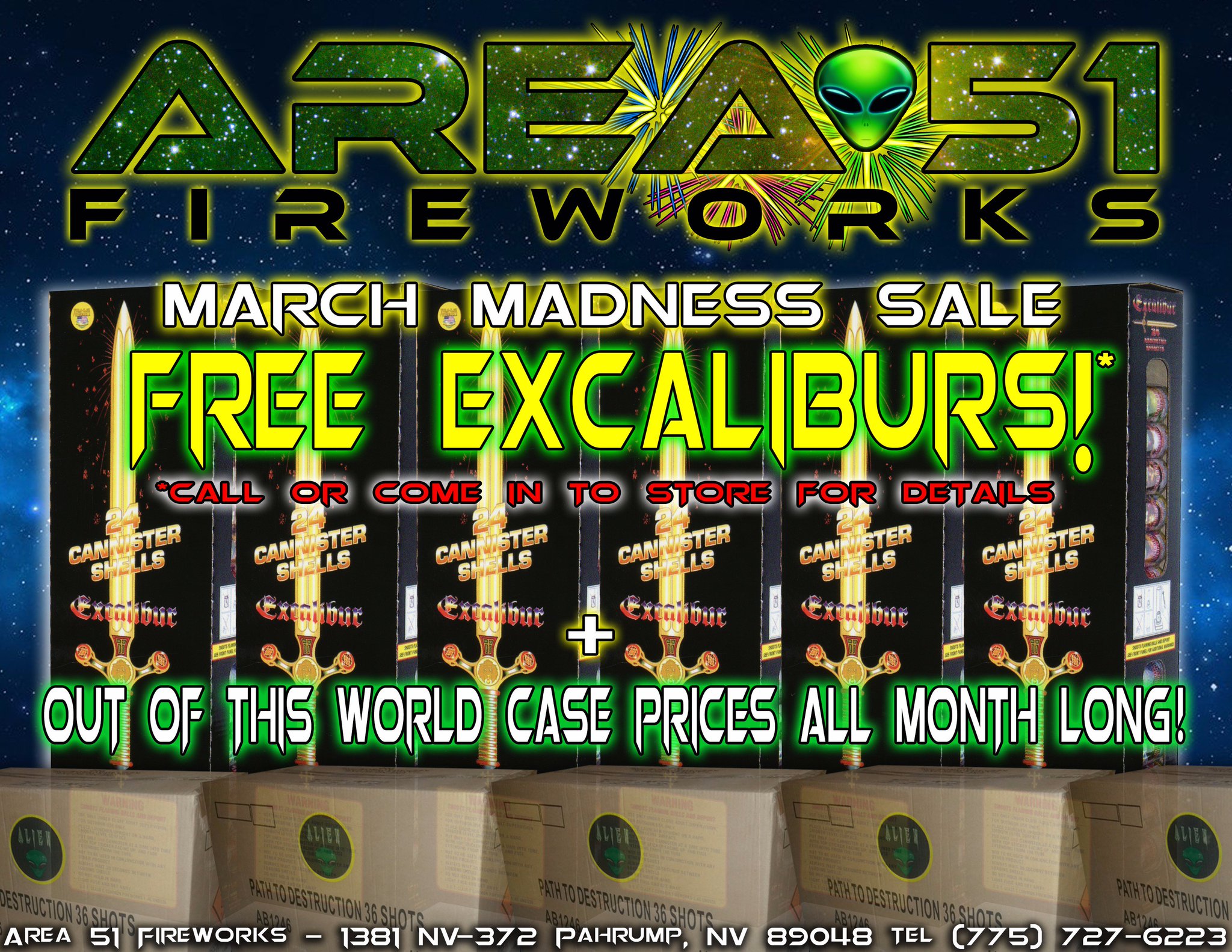 Area 51 Fireworks On Twitter Pahrump March Madness Free Excaliburs Out Of This World Case Prices All Month Long Https T Co Fx01o9nibj